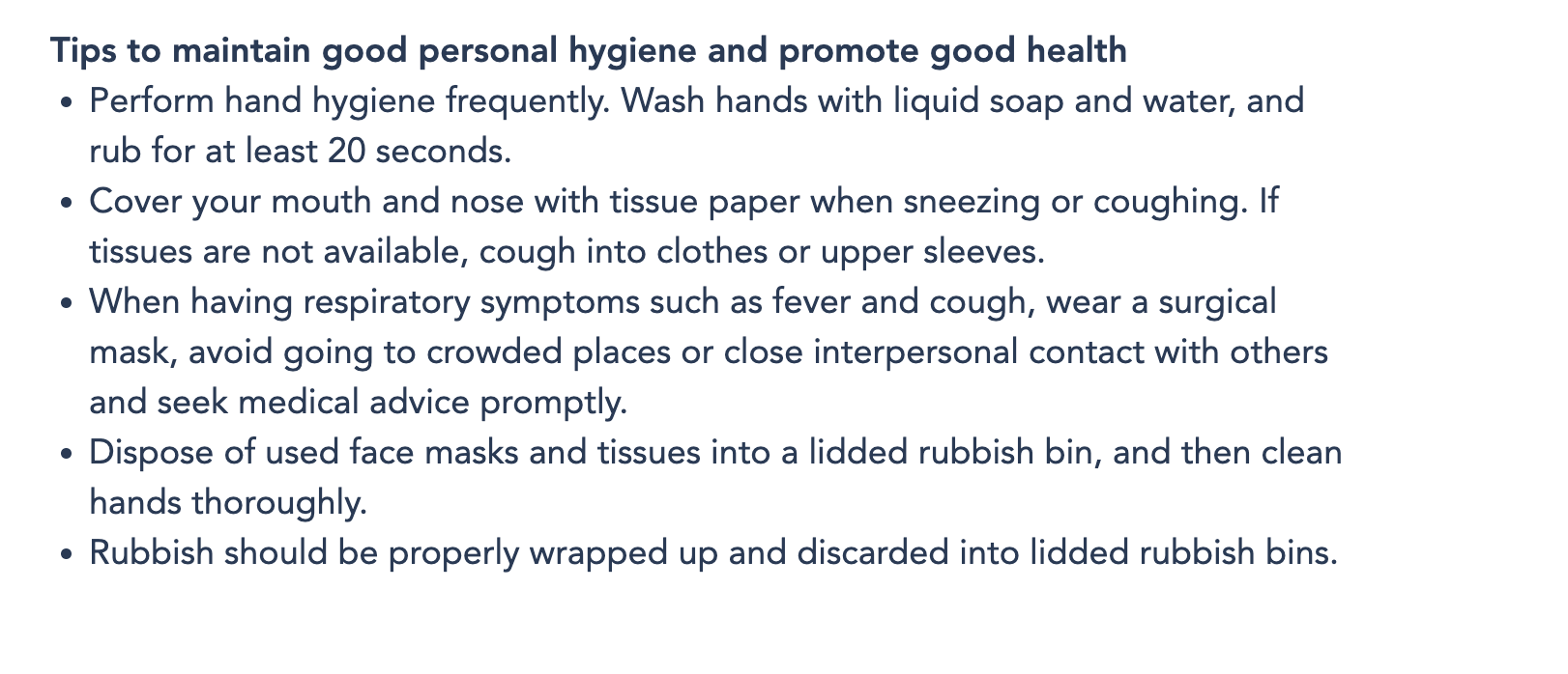 The website also has a list of tips to maintain good personal hygiene.