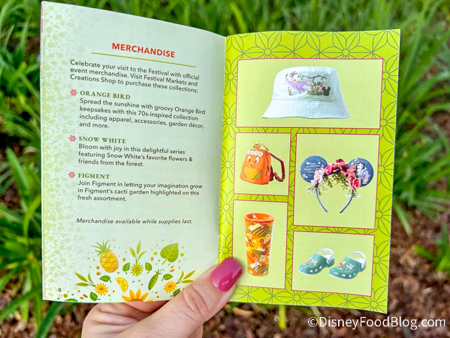 Looking to get some shopping done? There are several collections available during the Flower and Garden Festival and this merchandise page will tell you where to find them. If you love Orange Bird, get your wallet ready!