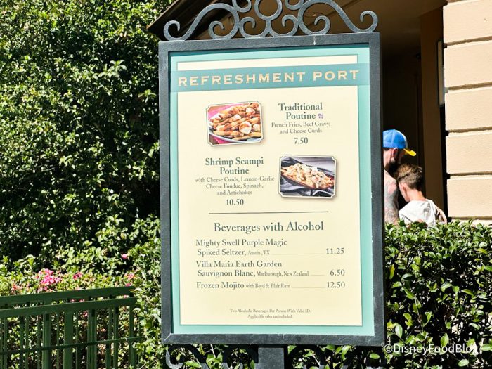 Refreshment Port is a quick-service spot at EPCOT that’s in the park year-round, and it’s where you can find some tasty poutine. But during festivals, the booth will usually have some special items!