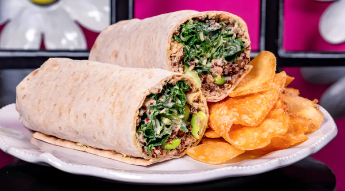 Plant-based eaters have an option here too — the Spring Garden Wrap, which combines romaine and quinoa into a wrap with a creamy lemon dressing and toasted pumpkin seeds. It also comes with house-made chips!