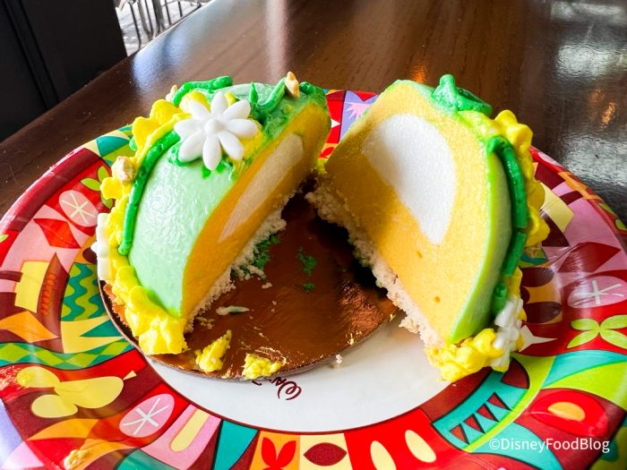 We found a dessert at Disney’s Port Orleans Resort, and it’s great for those of you wishing for something sweet — especially if you love Princess Tiana and tropical flavors.