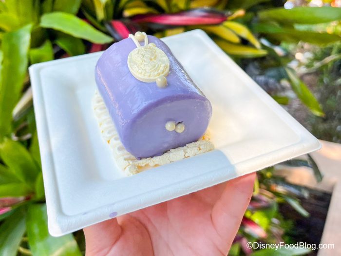 BUT we really feel like there should have been some kind of filling between the cake and the cream. Also, that “cream” wasn’t cream at all, but that weird gelatin topping thing that Disney puts on so many of its desserts (you know what we’re talking about, right?). So the texture just feels off. The dessert is also VERY VERY sweet, which we didn’t expect because the description makes it sound so light.