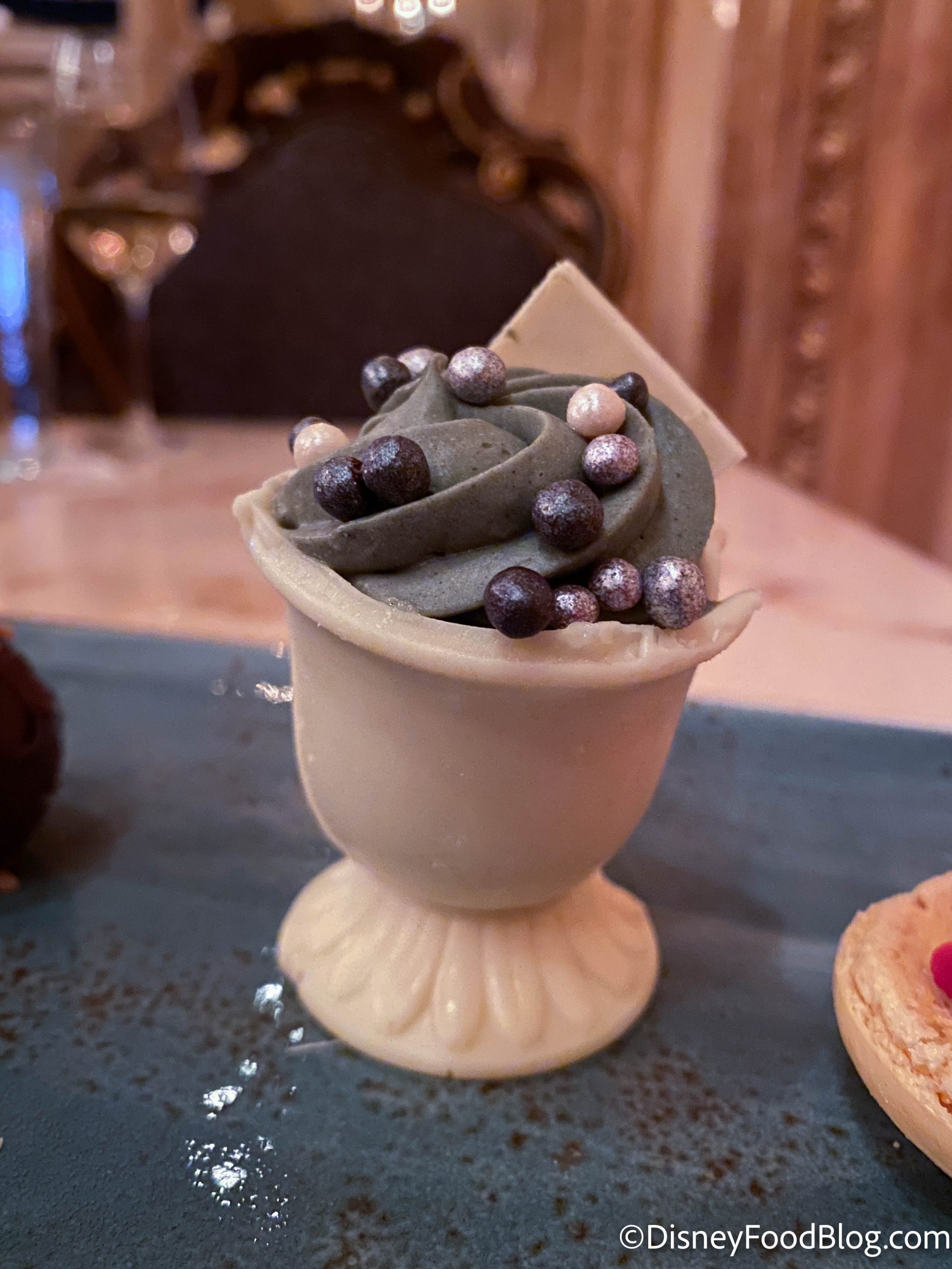 Yes, THE grey stuff is something you can actually eat in Disney World and yes, it’s incredible. If you want to try this iconic dish, head on over to Be Our Guest Restaurant (snag a reservation fast because those can be hard to come by!). There, you’ll be able to get a Dessert Trio that includes a chocolate tart with grey stuff, crisp pearls, and a white chocolate wafer.