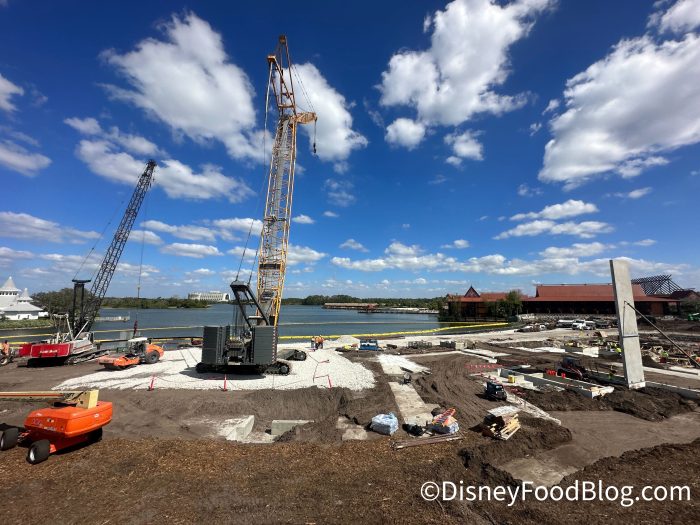 The big construction project over at the Polynesian is for the new Disney Vacation Club Villas and we’ve seen a LOT of progress happening there. The last time we checked, we saw the first of a foundation being put down on the construction site: