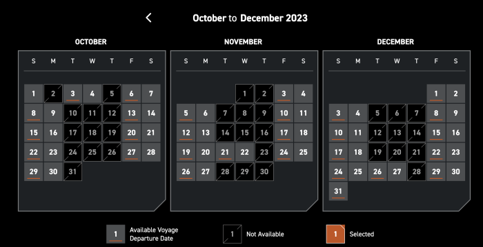 And now, it looks like Disney has changed the number of voyages available throughout the week. Previously, there were dates all throughout the week for guests to book, but a quick glance at the upcoming calendar shows that voyages have been reduced to just two times per week.