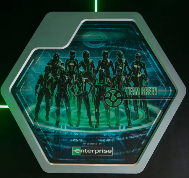 Disney has announced that, after exiting the ride, guests will enter a new post-show space where they’re introduced to a new team presented by Enterprise — Team Green! In the center of the space sits Team Green’s state-of-the-art green Lightcycle.