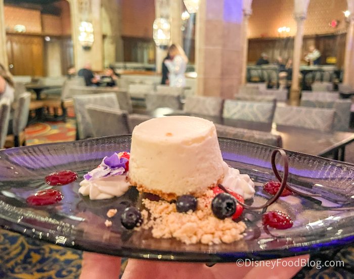 Oh, look, another Disney World mousse. Complaints aside, we did enjoy the mousse and loved the addition of the praline center, but at the end of the day it’s a mousse you’re getting at the end of an $80 per person dinner. The hazelnut gelato was our favorite part, and we wished we could get an even bigger portion of this instead!