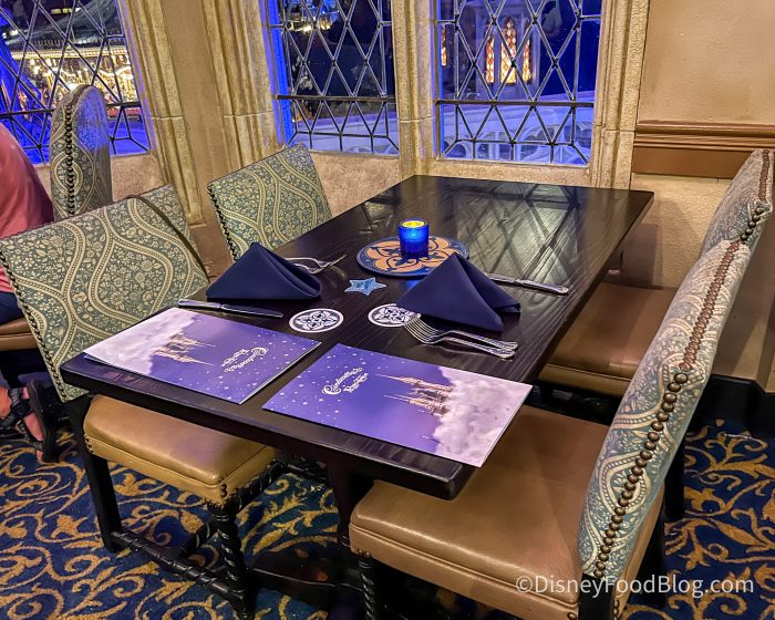 Here’s a look at where we were seated, with a stellar view of Prince Charming’s Regal Carrousel. If you can request a table next to the window, it’s definitely worth doing. Those windows will give you some of the most unique views of Magic Kingdom. Of course, Disney might not always be able to accommodate this request, but it never hurts to ask!