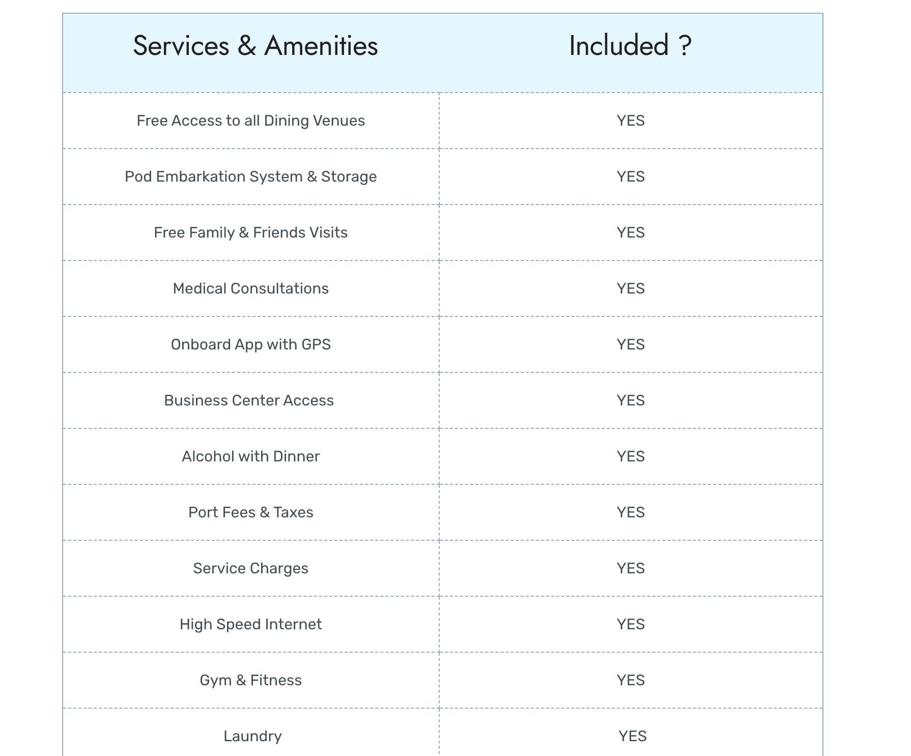 The company is a branch off of Miray Cruises and has a 30-year history in the cruise industry. The MV Gemini has 400 cabins and can hold 1,074 passengers. The Gemini will also be fitted with remote working facilities including a business center, 14 offices, a library, and a lounge — all of which will be free to access. That’s not all that included!