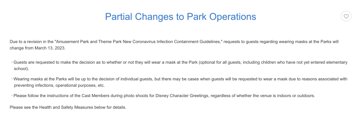 Now the park is seeing changes to its COVID-19 face mask policy, as it relates to the “Amusement Park and Theme Park New Coronavirus Infection Containment Guidelines.”