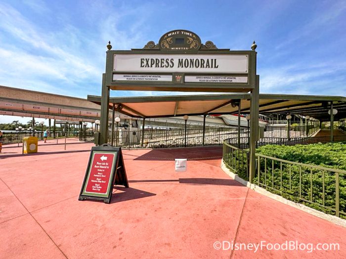 We were headed to Magic Kingdom recently when we noticed that the Express Monorail was only running in one direction — from the Transportation and Ticket Center (TTC) to Magic Kingdom. We talked to a Cast Member who said that it should be back up and running from Magic Kingdom to the TTC later on in the day, but in the meantime, guests have to take the Resort Monorail or the bus.