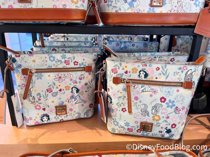 Okay, where are our Dooney & Bourke fans at? Because there’s also an EPCOT Food & Wine Festival Dooney & Bourke Snow White Collection, including this Tote. Snow White, surrounded by flowers, graces both sides of this bag.