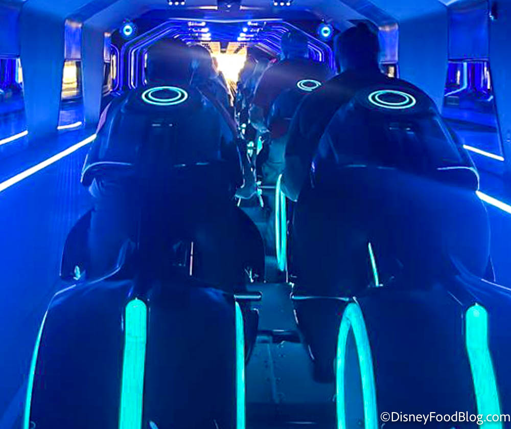 Yes, the seats are uncomfortable. The bike style is similar to the ride vehicle on Flight of Passage, but if you’re comfortable on that ride, don’t assume the same for TRON. You have to lean forward quite a bit to reach the handle bars, and those leg restraints lock in place; it can be awkward and leave you feeling stiff after the ride – good thing it’s short!