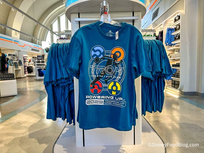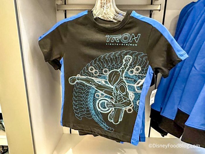 We just got a closer look at a bunch of the new TRON Lightcycle/Run merchandise coming to Magic Kingdom. As a reminder, this merchandise will be available when TRON opens in a new pop-up shop that’s opening across from Monster’s Inc. Laugh Floor and also in the Tomorrowland Launch Depot store (which is the new name for Tomorrowland Light & Power Co. — the shop that used to be the Space Mountain store).