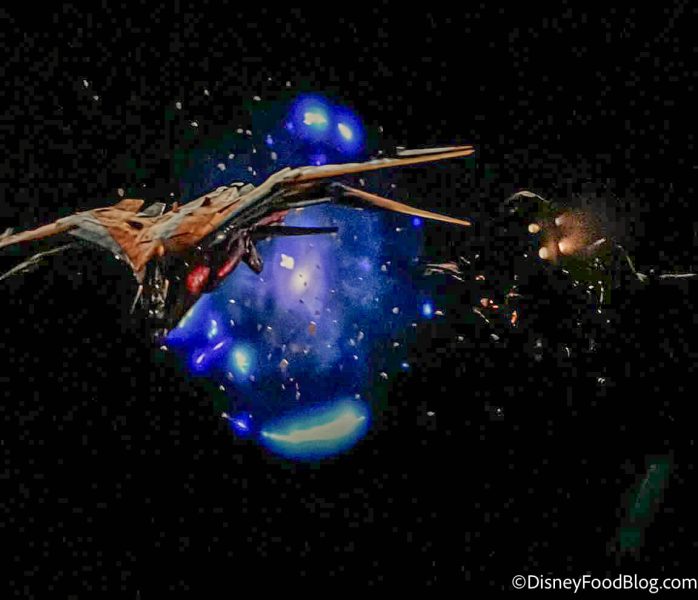 Rocket, Groot, Drax, Gamora, and Star-Lord need guests’ help to save the galaxy after receiving that S.O.S. from the Nova Corps that their outpost on Earth is in danger. This means riders have to get out of the ship FAST, and are evacuated by using “Starjumper shuttles – small escape pods that launch from the Starcharter cruiser.”