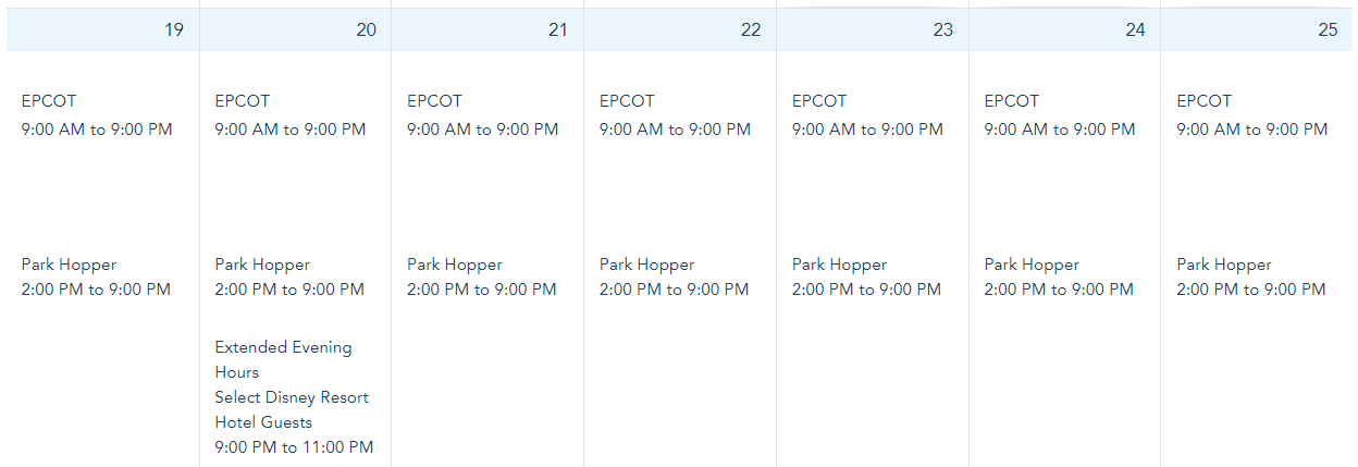 EPCOT Park Hours