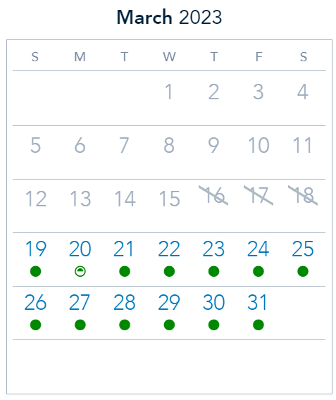 Disney World uses a different calendar to track park pass availability for Annual Passholders. For the IncrediPass, all four parks are available on March 19th, and March 21st-25th. Magic Kingdom is sold out for March 20th.