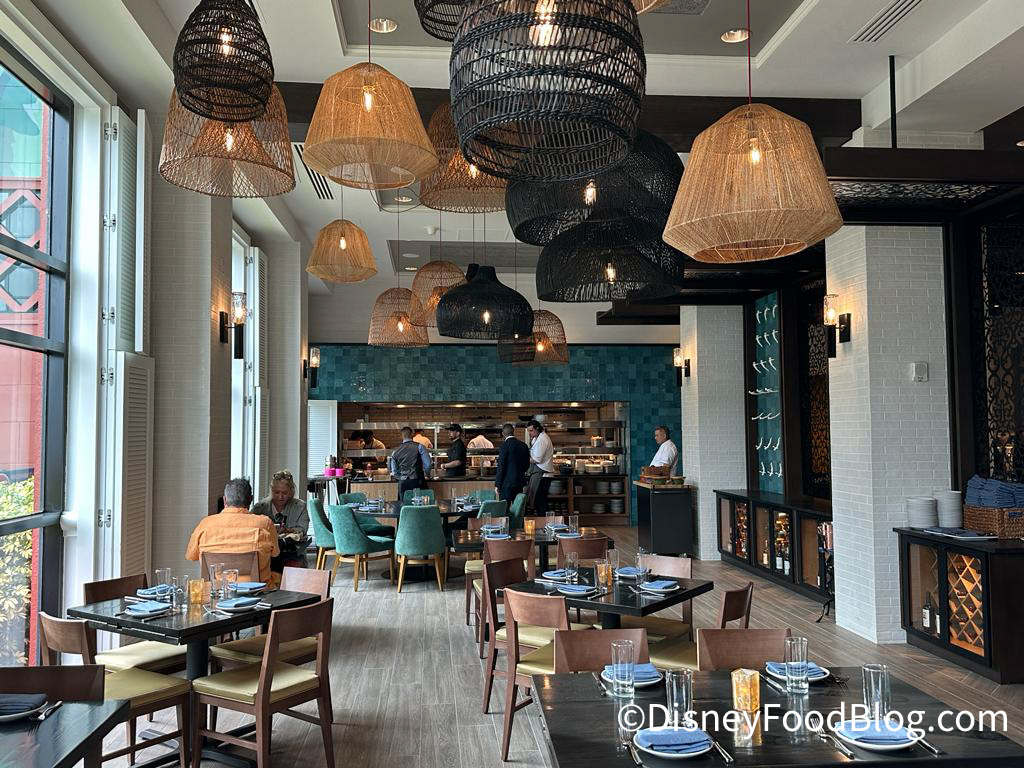 The restaurant is 5,500 square feet and has space for about 300 guests, including a 30-person bar and a private dining room for 50. If you’re not staying at the Dolphin hotel, you can still visit this restaurant. Access is available by boat or walkway from EPCOT’s International Gateway and Disney’s Hollywood Studios, or just hop on a bus to the Swan and Dolphin hotels from whichever Disney World park you’re visiting.