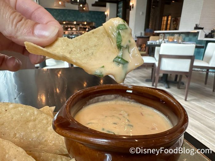 For our appetizer, we grabbed classic Chips and Queso! This dish is made with Three-Cheese Blend, Roasted Tomato, Pickled Jalapeño, and Warm Corn Tortilla Chips.