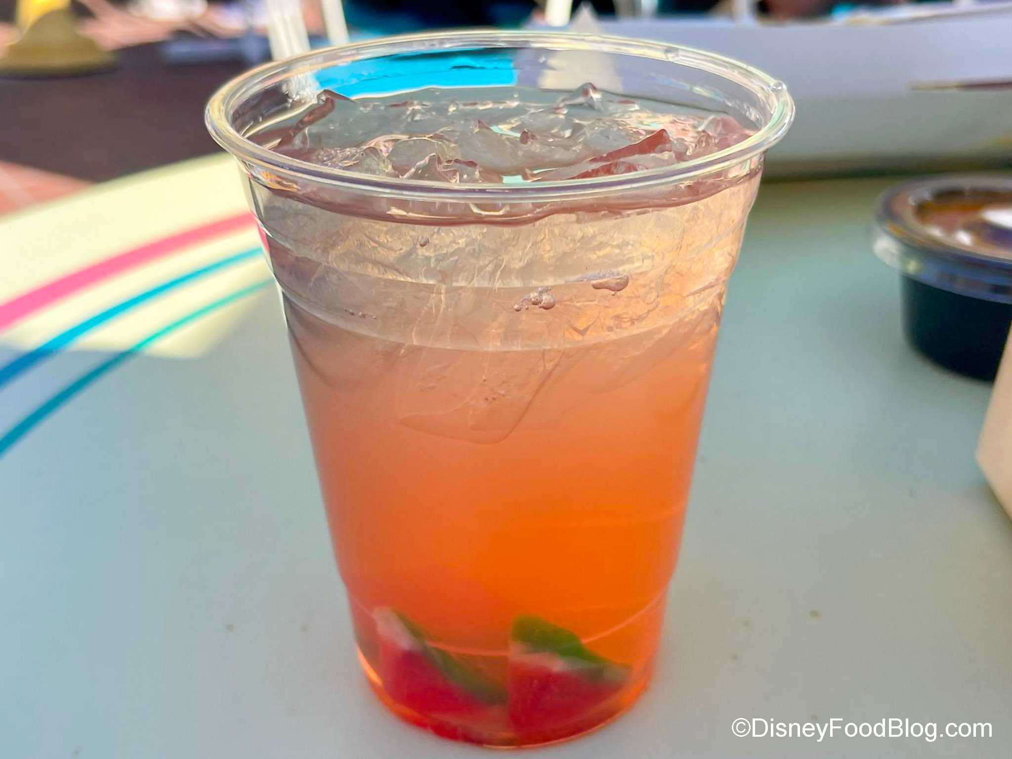 For drinks, you can grab the Picnic Time Watermelon Lemonade for $6.49. It’s made with Minute Maid Zero Sugar Lemonade with Watermelon Premium Syrup and Watermelon Gummies. Of the three drinks we tried, this one was our favorite. Ours did not have the Watermelon gummies, though.