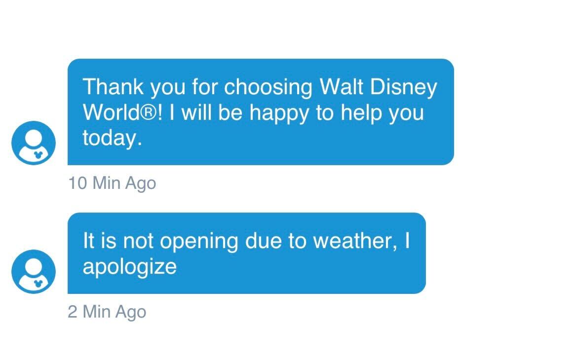 We chatted with a Cast Member online who confirmed that Typhoon Lagoon would remain closed today due to the chillier weather in the area (this morning was in the low 50s!). The water parks do generally close when there’s a potential for cold or bad weather.