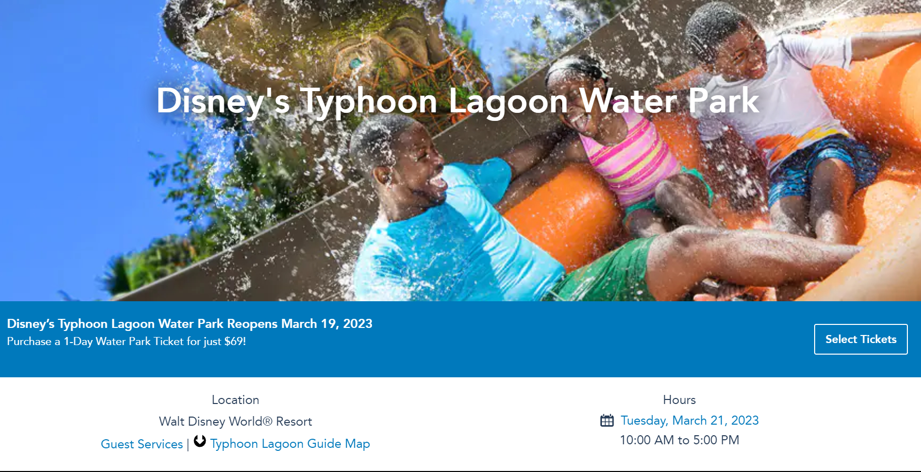 When we looked at the hours for Typhoon Lagoon for tomorrow, March 20th, we also noticed no hours were listed. However we did see hours for Tuesday, March 21st, which we assume will be the water park’s new reopening date.