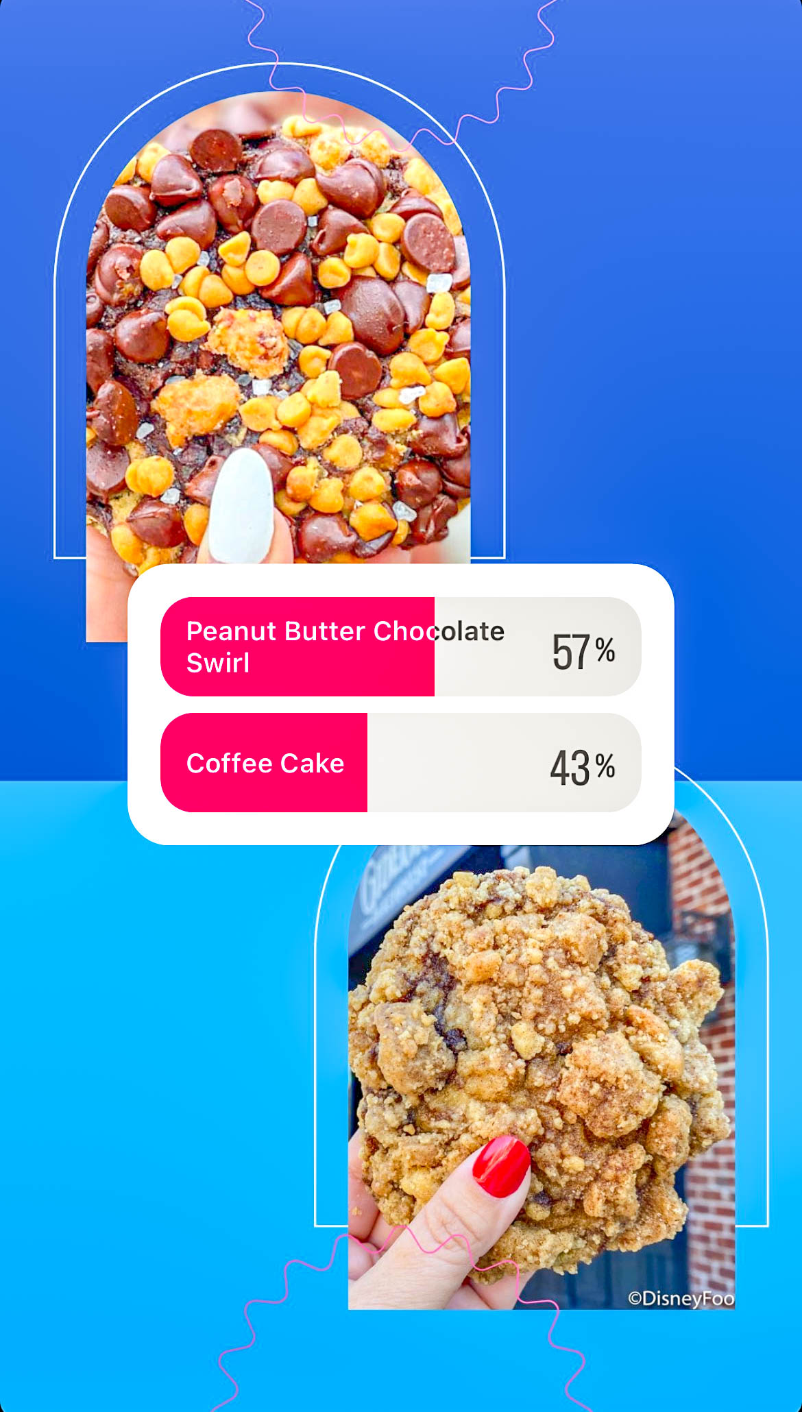 We have to say we’re a little surprised to see Coffee Cake lose! Peanut Butter Chocolate Swirl took the win here with 57% of the vote.
