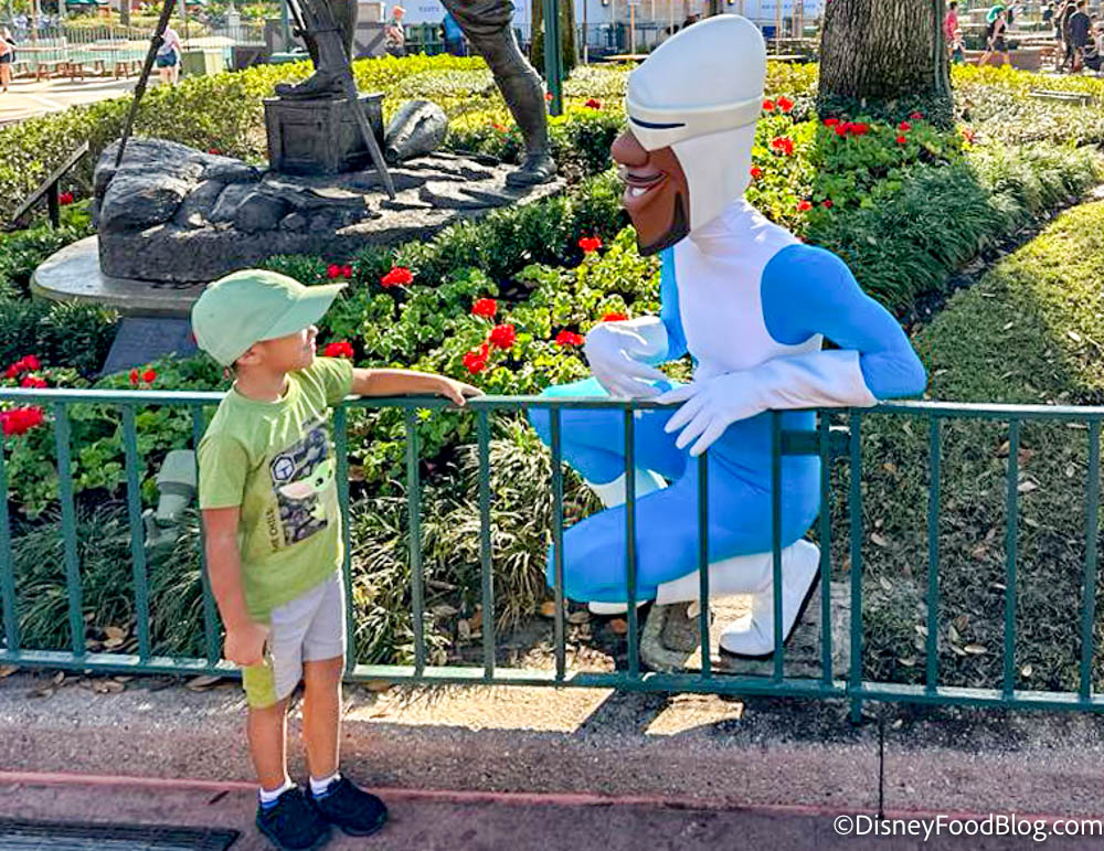 For instance, we recently saw Max Goof in his Powerline costume at Disney’s Hollywood Studios on Grand Avenue near the entrance to Galaxy’s Edge. The Incredibles crew has been seen at several areas around the perimeter of Mickey and Minnie’s Runaway Railway. You may be surprised with a greeting in EPCOT’s World Showplace between the United Kingdom and Canada pavilions or just to the left side when facing The American Adventure.