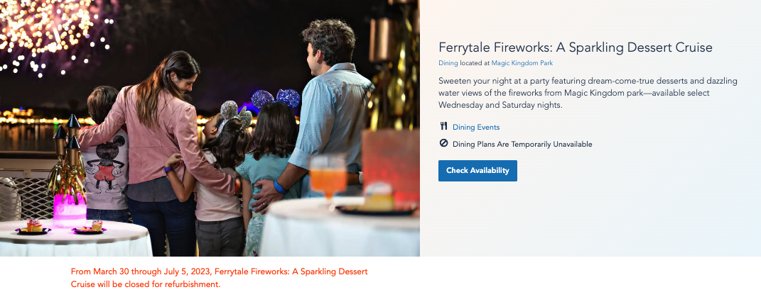 The Ferrytale Fireworks Cruise is DISAPPEARING soon — but only temporarily. From March 30th to July 5th, 2023, Ferrytale Fireworks will be unavailable due to routine maintenance and refurbishment.