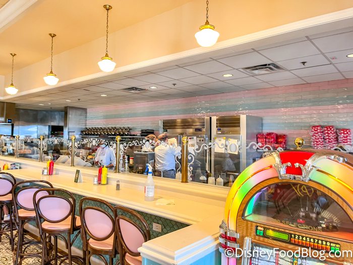 There are multiple retro diner-style restaurants in Disney World, but one of our favorites has to be Beaches & Cream Soda Shop. This iconic spot is located at Disney’s Beach Club Resort and we’ve loved it in the past, but we decided to make another trip recently to see if it still stacks up to our standards. Let’s go!