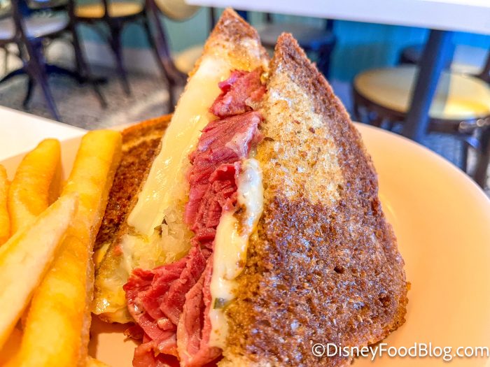 We ended up settling on the Reuben Sandwich for our entree, which is available for $19. It’s made with corned beef, sauerkraut, swiss cheese, and Thousand Island dressing on marbled rye bread.