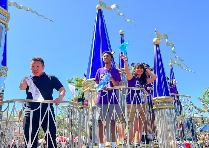 Some of the Dreamers get to ride on a castle-themed float.