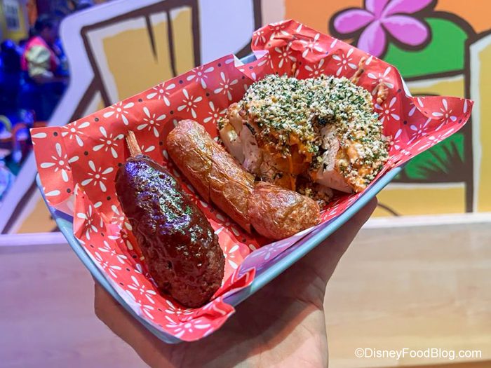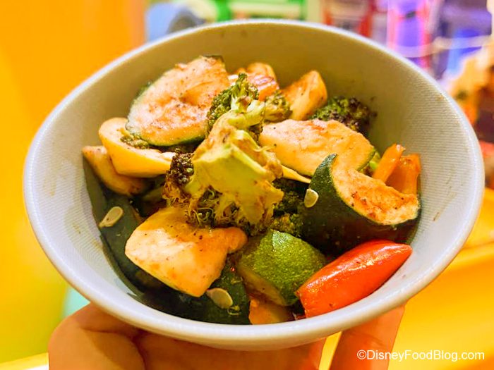 The Scrumptious Bratwurst was the standard Disney World plant-based sausage or brat, but this was prepared a bit differently. It was somehow tender and juicier than what we’ve had at other locations and is seasoned to taste like it had been barbecued. Definitely the best plant-based brat on property!