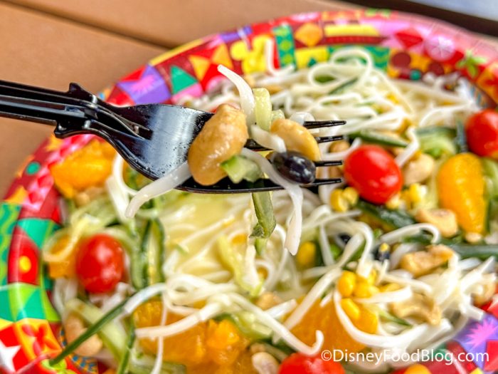 While we enjoyed this salad as a whole — the noodles did have a pretty unusual texture — almost chalky. Keep that in mind if you are sensitive to different textures.