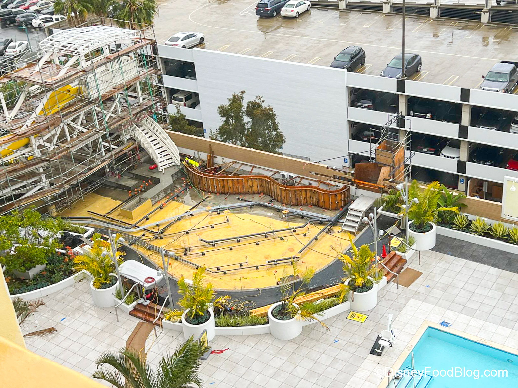 We managed to snap some photos of the latest progress for the construction of the hotel, and it looks like they’re currently doing a bit of renovation around the pool area.