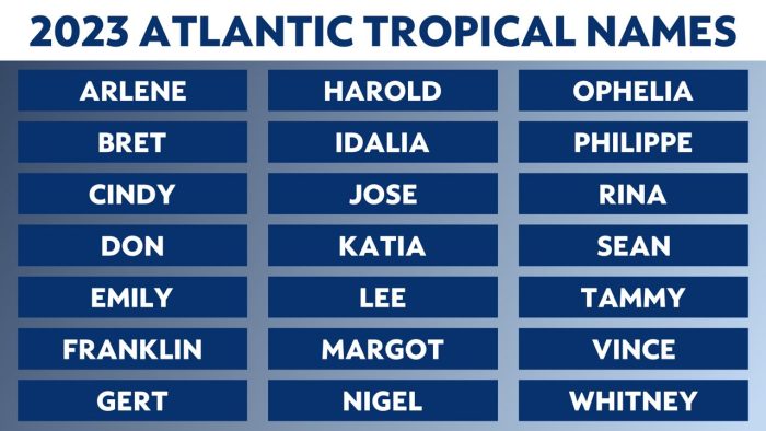 Here’s a look at the Atlantic Tropical Names for the 2023 hurricane season.