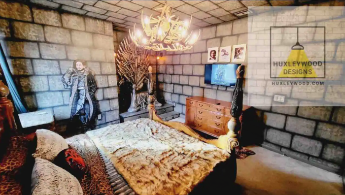 But perhaps the most unique thing about this vacation home is that it’s entirely themed to various TV shows! Each of the 15 bedrooms is decorated like a different hit series, with everything from The Mandalorian to The Simpsons to Stranger Things represented in the decor.