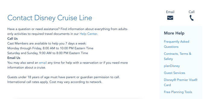 The second option to book your Disney cruise is to call (800) 951-3532. This is the phone number to contact Disney Cruise Line directly. This is a great option for guests who want to book their trip themselves but might want a little Cast Member help along the way.