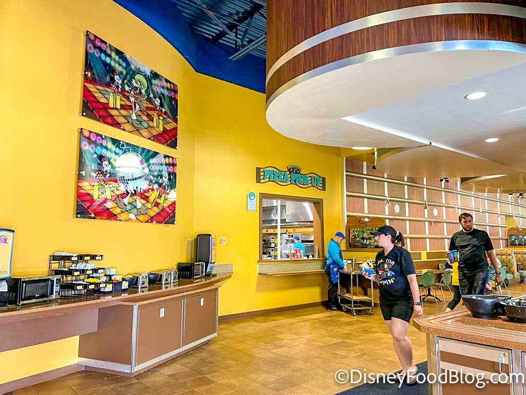 Stop by Intermission Food Court at All-Star Music for a food break. This food court offers a variety of food options for breakfast, lunch, and dinner, which you’ll find at multiple counters around the restaurant as well as a “Grab & Go Market.” In this dining room, the theming is BIG and goes along with the music atmosphere around the whole resort. You will usually find some seasonal treats here as well!