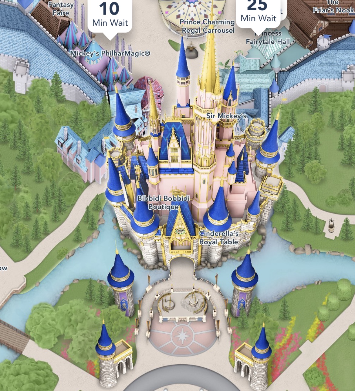 When you’re checking wait times around Magic Kingdom, you used to be able to see the big 50th Anniversary plaque on the front of the castle.