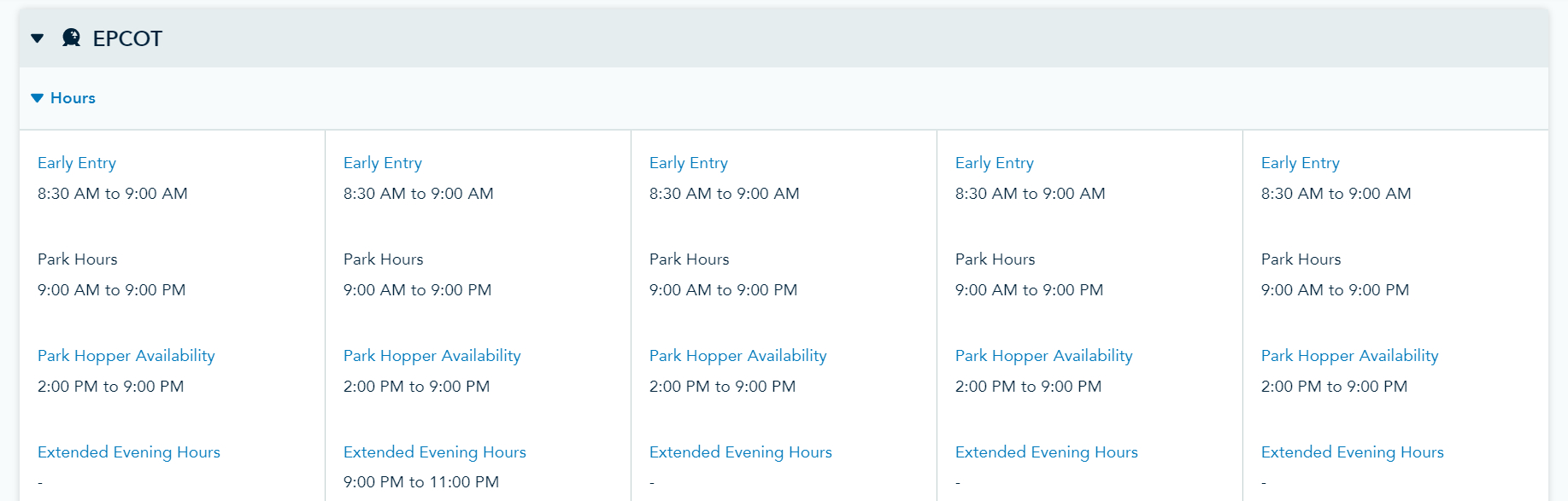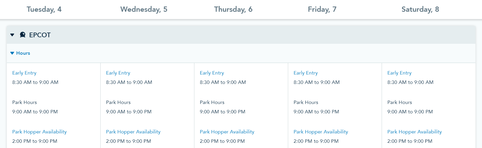 EPCOT Park Hours