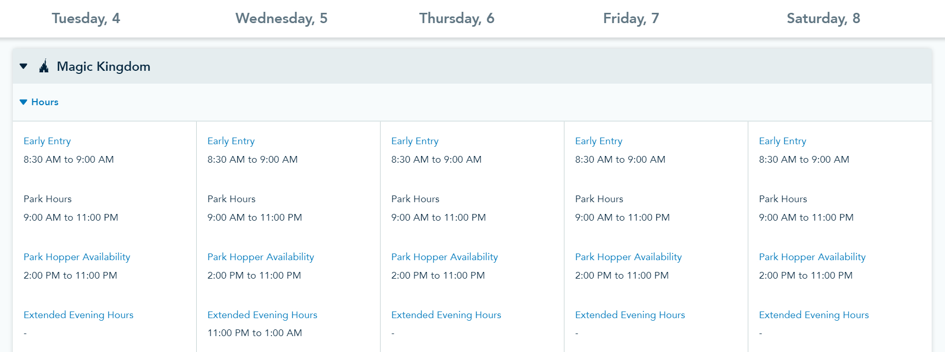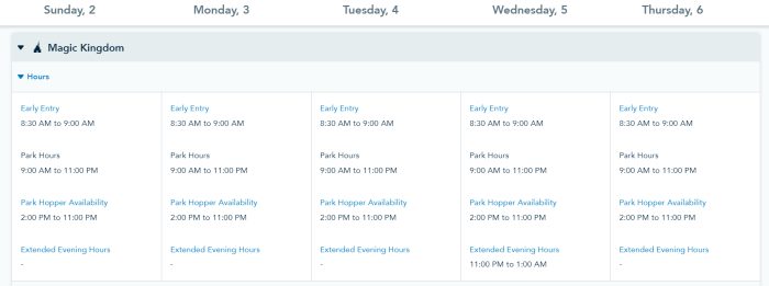 Magic Kingdom Park Hours
