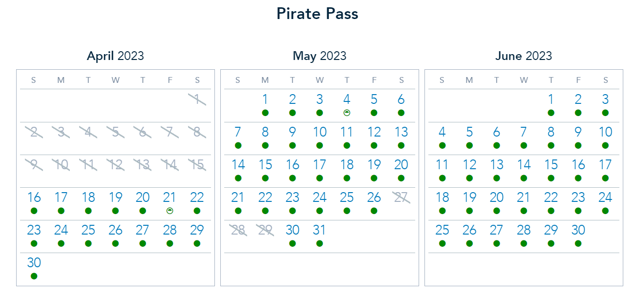 Those who have a Pirate Pass have the entire week blocked out.