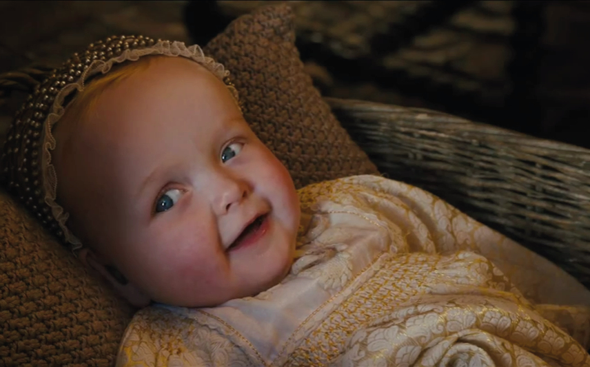 We DID see more of Baby Aurora in Maleficent, though, and she looks like an actual human baby (because she is). Still, look at that cute smile.