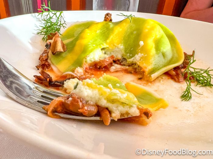Now that we’ve had our bread, it’s time for the appetizers! We started with the Goat Cheese Ravioli, which is a California Grill classic. It had tons of creamy and delicious goat cheese packed into a perfectly al dente ravioli. It’s incredibly rich and even though it’s only one ravioli, it’s a pretty solid portion.