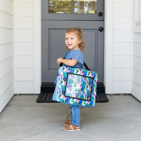 It can also be used as a travel bag and it has two detachable, mesh storage pockets able to fit those necessities like crayons, snacks, and more.