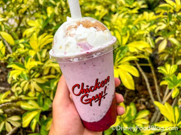Hey 👋 from Chicken Guy in Disney Springs! We had to come try the NEW Huckleberry Shake! It’s got hand-spun vanilla soft-serve and mixed berry purée, and is topped with whipped cream and cinnamon toast crumble for $6.99! pic.twitter.com/nekXBdBIDy