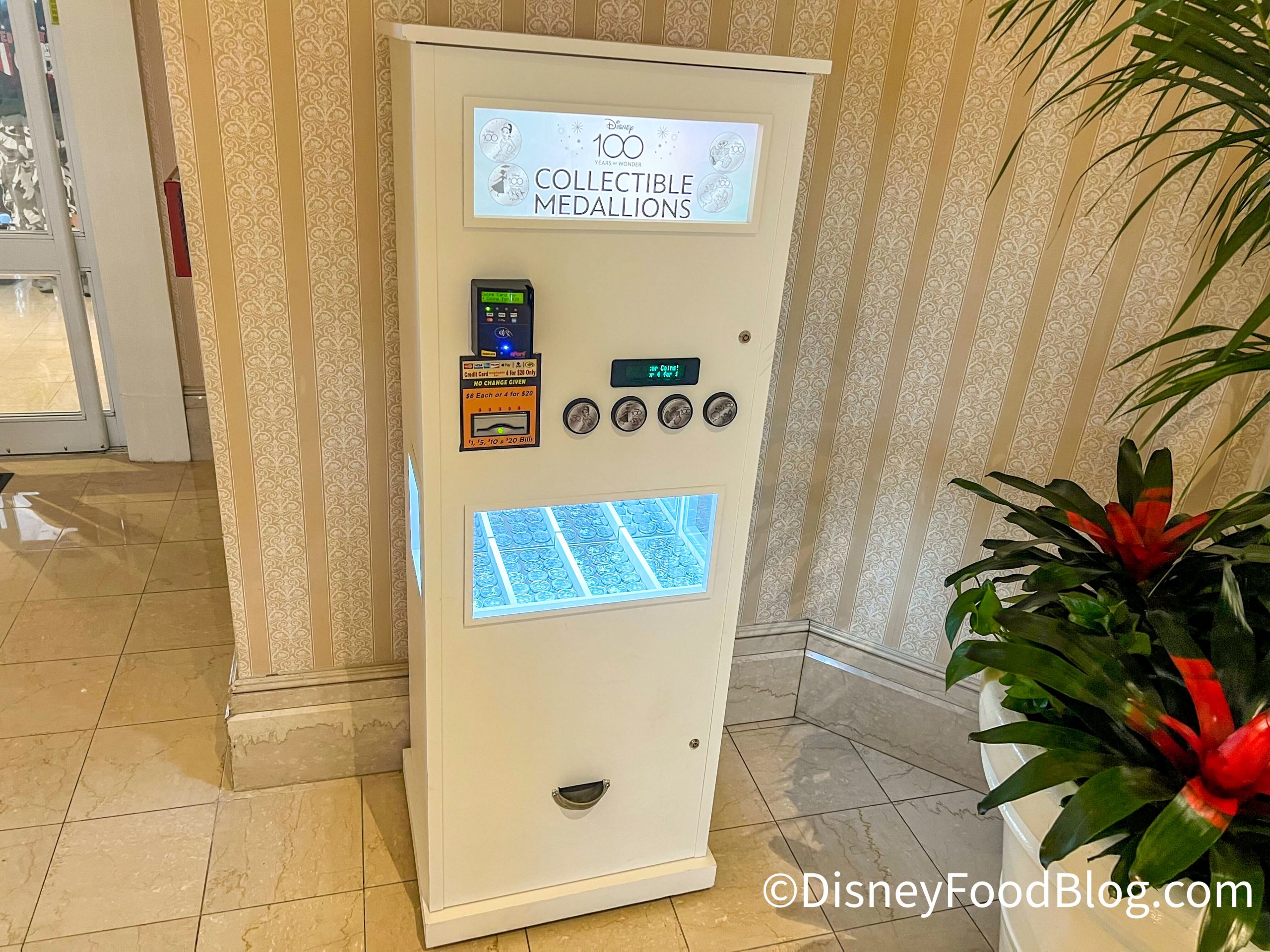 These are $6 each or you can get all four for $20. The machine is located on the second level of the resort, right by the monorail entrance so stop by there if you want a relatively inexpensive souvenir to mark Disney’s 100th Anniversary.