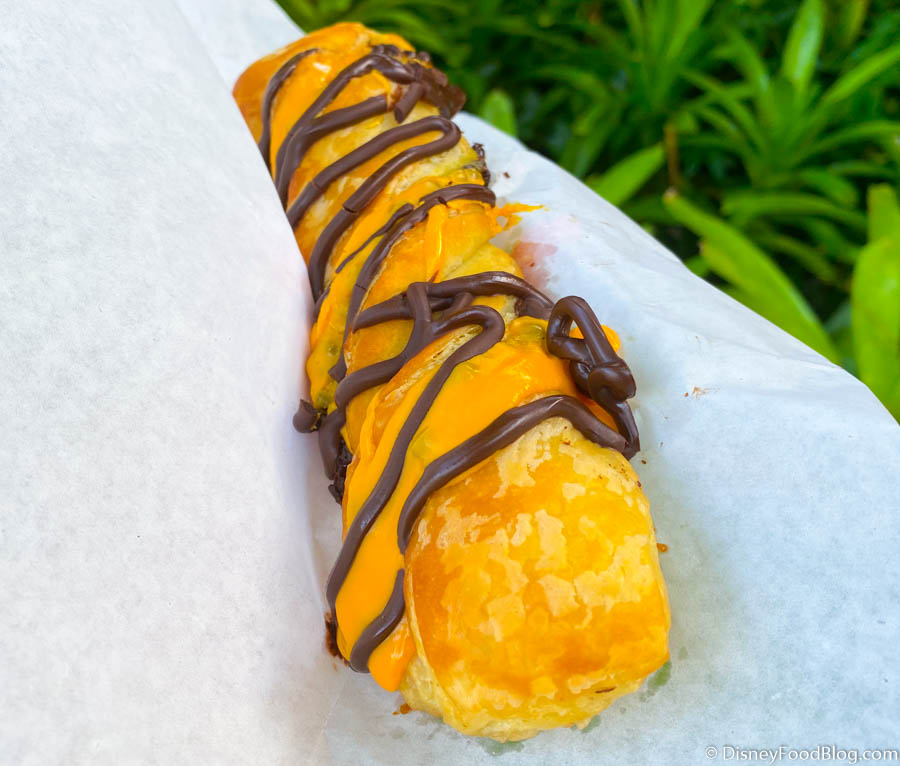 The Tiger Tail is Animal Kingdom’s answer to the popular Cheshire Cat Tail over at Cheshire Café in Magic Kingdom’s Fantasyland. It takes your regular chocolate twist and adds some colorful icing to reflect the cat in tribute. In this case, added orange icing makes up the Tiger Tail!