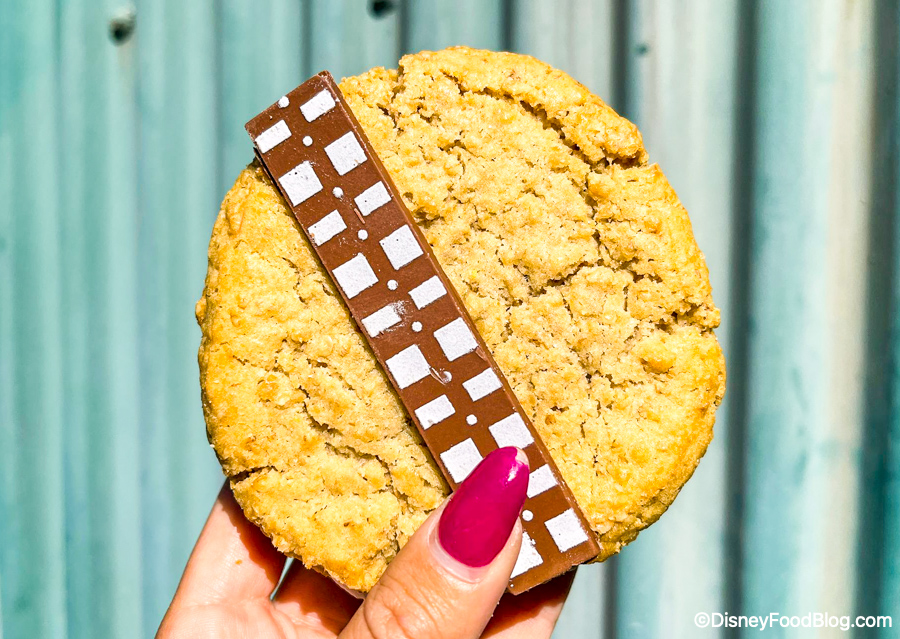 The Wookiee Cookie is like a giant Oatmeal Cream Pie — but themed to Star Wars, of course! You can get this treat from Backlot Express.